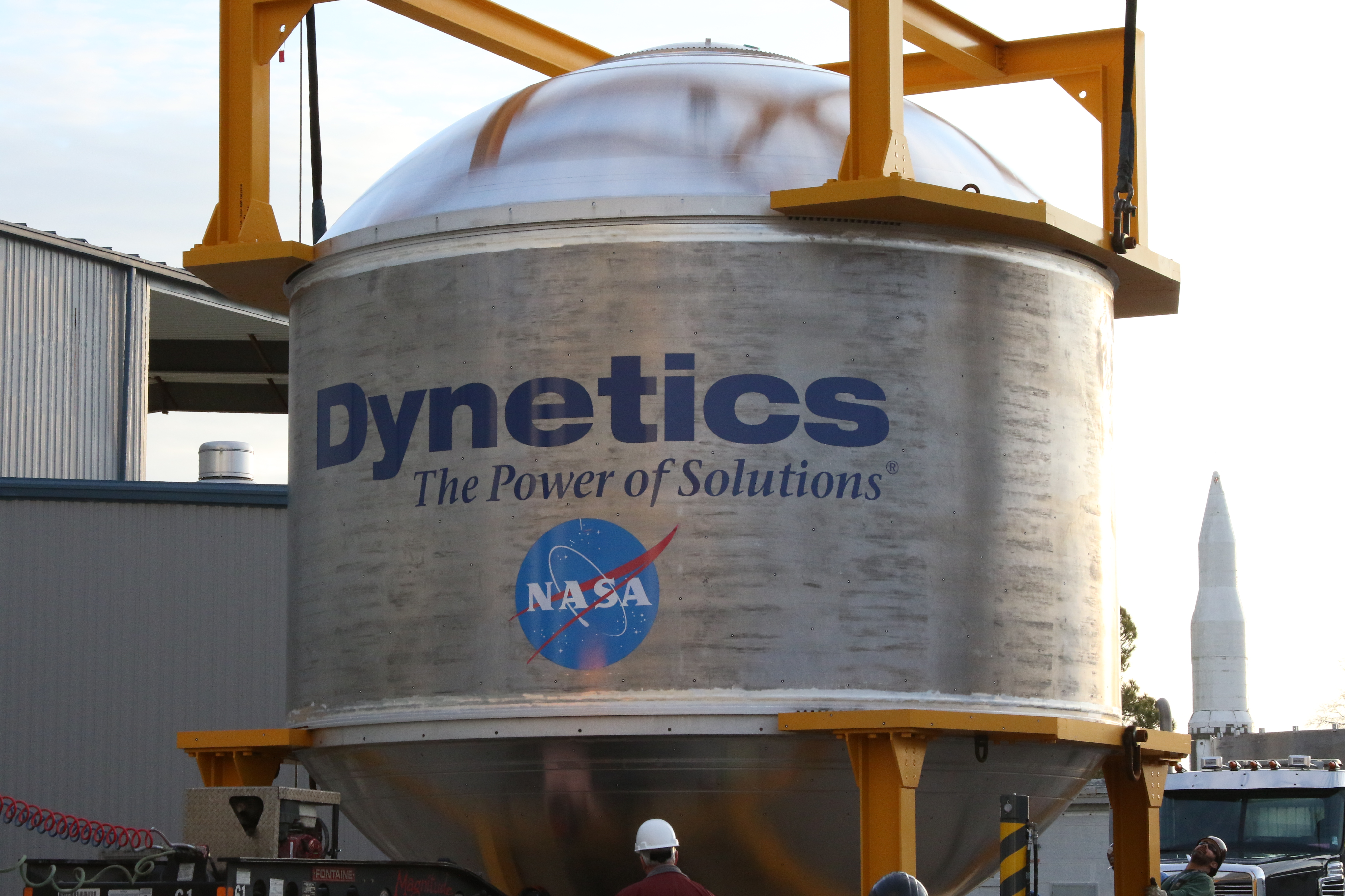 Weighing in at more than 10,000 pounds, the cryogenic tank barrel is the largest tank built at Marshall since the Apollo era. It’s now at the Dynetics facility in Iuka, Mississippi, for testing to verify its structural design and manufacturing processes meet all of NASA’s requirements.