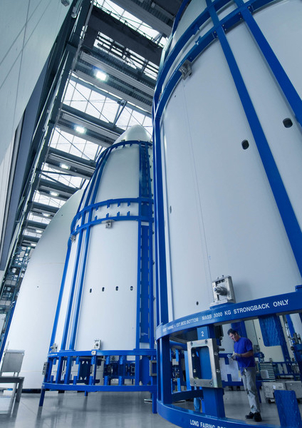 Final assembly of payload fairings at RUAG Space in Emmen, Switzerland.